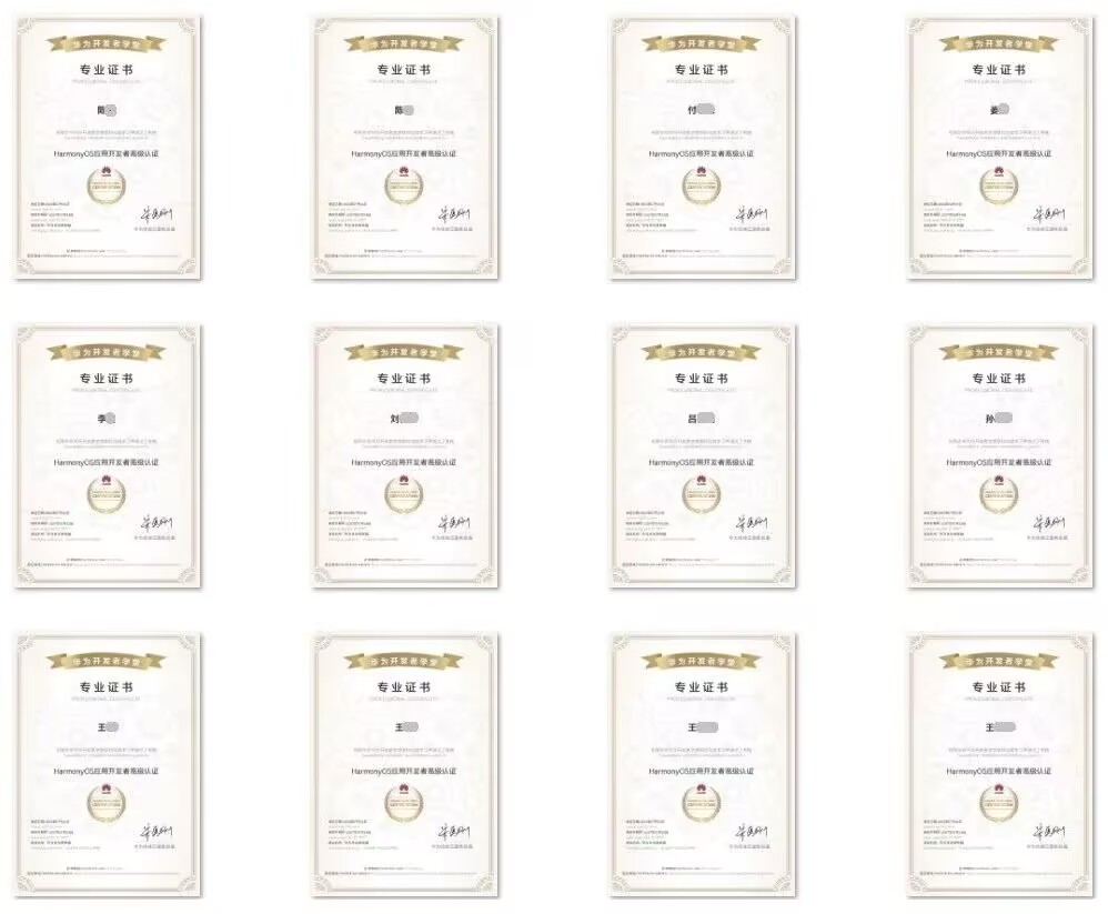 本次师资培训强调“学-练-考”一体化模式,经过一周的的学习和开发训练,参训教师以扎实的理论功底与编程能力通过“鸿蒙应用开发者高级认证”考试,并获颁“鸿蒙应用开发者高级认证证书”,本次培训的顺利开展为我校进一步深化校企合作及提升师资能力奠定了更加坚实的基础。