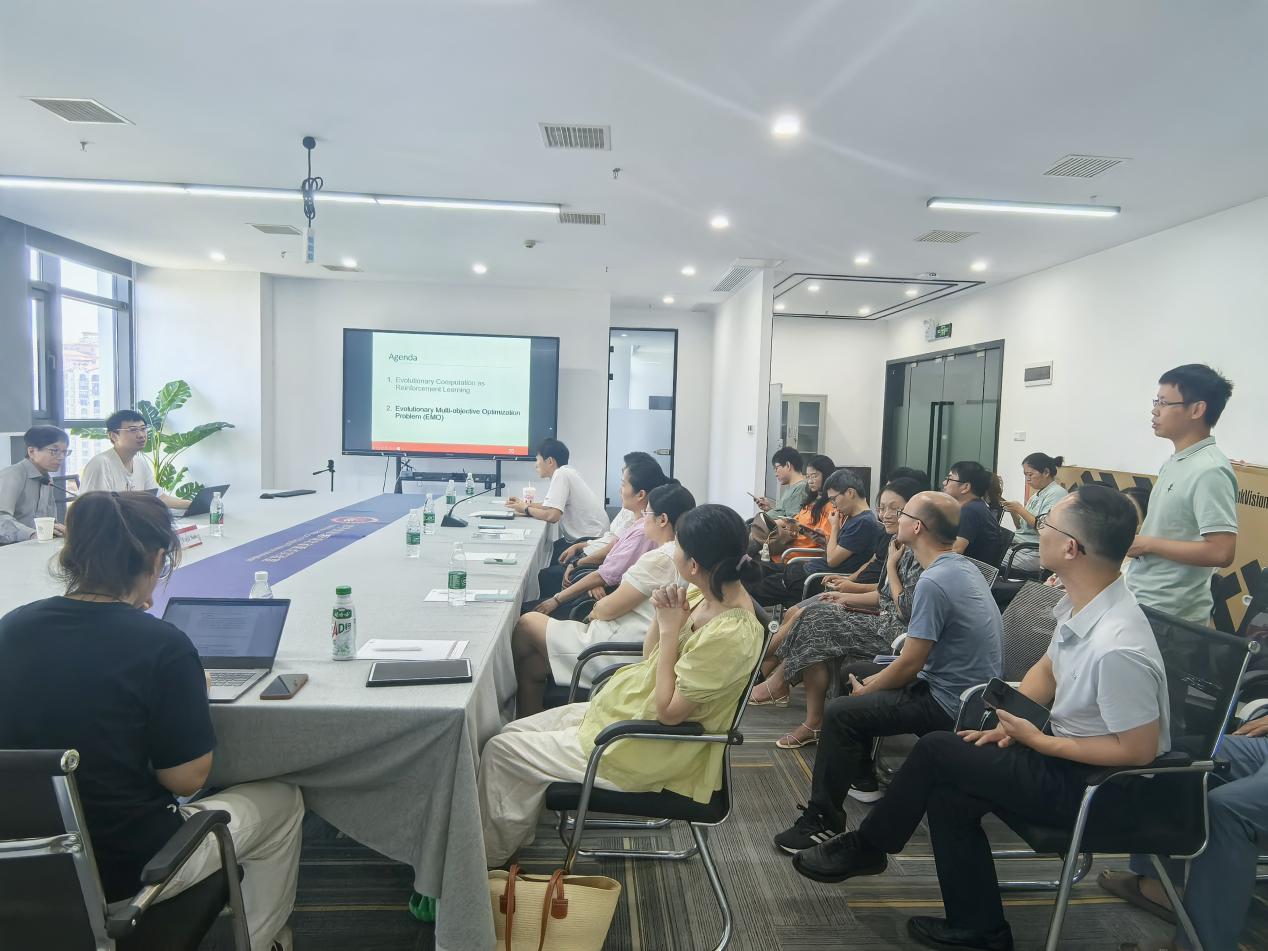 报告会上,Yuji Sato教授从“进化计算=强化学习”这一新颖视角切入,系统阐述了进化算法、群体智能等元启发式方法在缺乏显式环境模型、仅依赖稀疏评价信号场景下的独特优势。他结合自身团队成果,展示了进化计算在大规模组合爆炸、多峰、黑箱及多目标优化问题中的成功应用,并以农业领域的温室环境多目标调控为例,现场演示了如何同时优化产量、能耗与碳排放,令在场师生深受启发。互动环节气氛热烈,师生就“并行化实现细节”“强化学习奖励塑形”等踊跃提问,Yuji Sato教授逐一耐心解答。