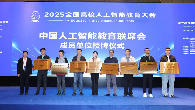 图为我校人工智能系代表参加“中国人工智能教育联席会”会员单位授牌仪式