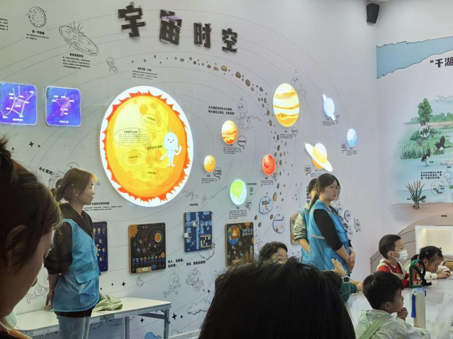 活动开始前,志愿者进行统一培训,明确工作范围和职责。活动中,他们担任“引导员”,为游客清晰指引展区路线,耐心讲解参观须知;化身“解说员”,用生动通俗的语言讲解物理实验模型和电磁实验等展品背后的科学原理;成为“解答员”,协助工作人员检票,帮助游客解决门票预约问题;成为“保障员”,认真维护展区秩序,配合完成各项保障与协调工作。从晨曦初露到夕阳西下,志愿者们始终坚守岗位,以热情的微笑和专业的服务架起科学与公众之间的桥梁,成为科技馆里一道温暖而亮丽的风景线。